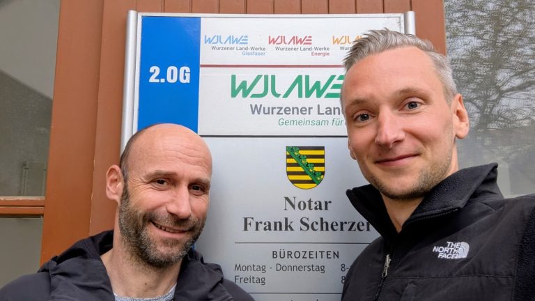 Ein Meilenstein, Silvio und Johannes unterzeichnen den Kaufvertrag für die Alte Gärtnerei in Lüptitz.